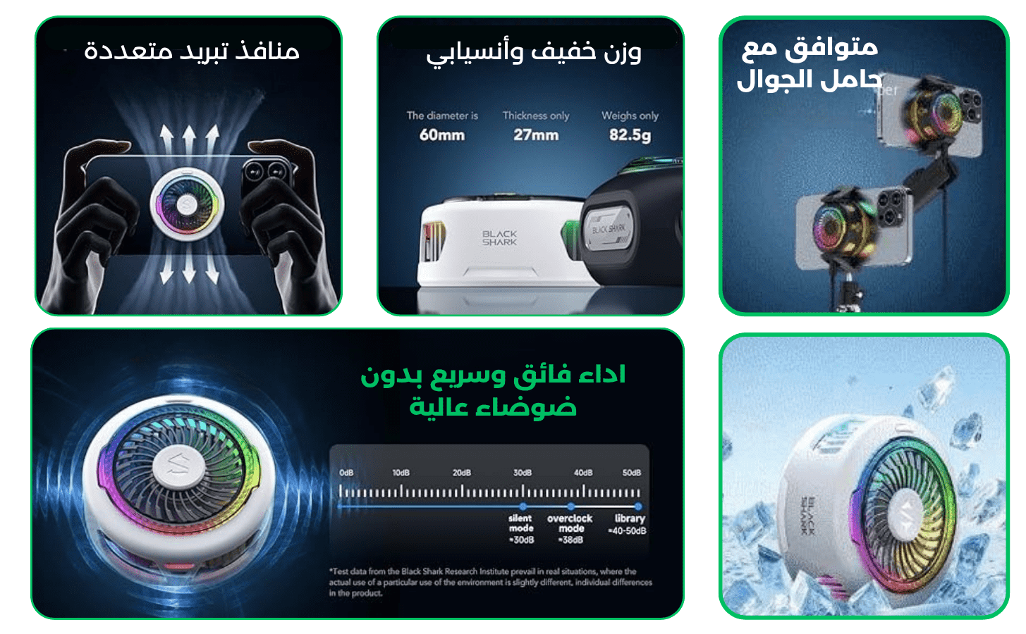 أستمتع باداء فائق مع مبردات فان كولر 5 من بلاك شارك حيث تمنحك تحكمًا فائق السرعة عند اللعب أو البث المباشر. كونها تعتمد على تقنية تبريد شبه موصلة (Peltier) بقدرة 20 واط تبريد فوري تخفض حرارة الهاتف بما يصل إلى 95°F (≈35°C)، وهي خفيفة ومناسبة للاستخدام المطوّل دون زيادة وزن الجهاز أو تعقيد.