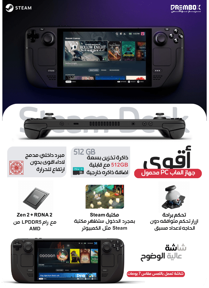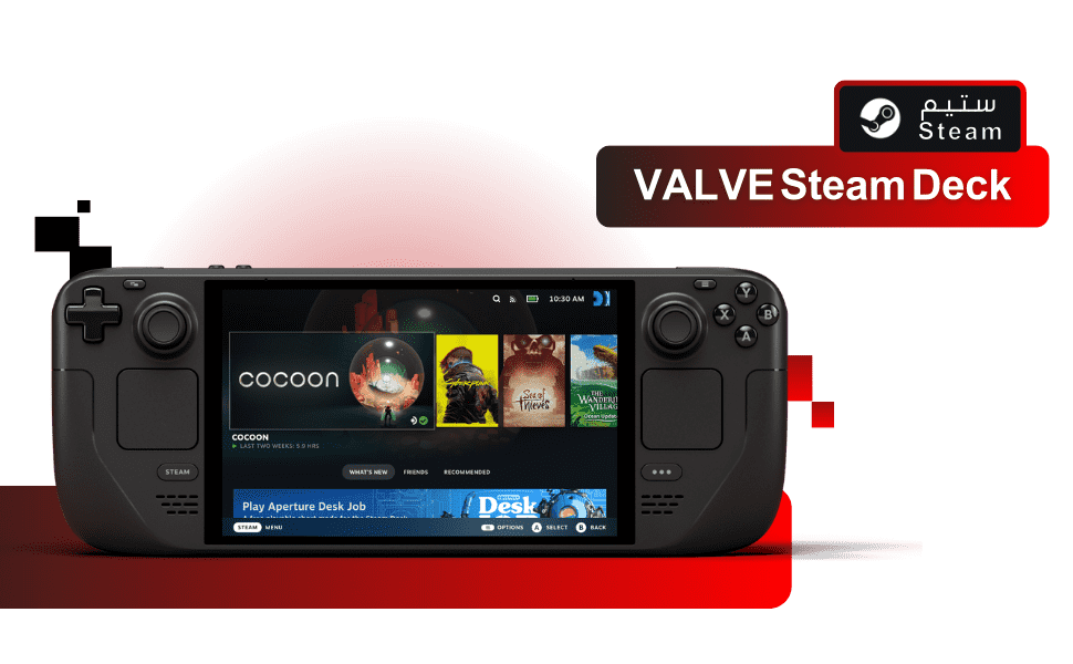 جهاز ستيم ديك جهاز ألعاب محمول valve Steam Deck Handheld Gaming Console لعشاق الالعاب لتشغيل جميع العاب PC بمواصفات متقدمه واداء جبار كما في اجهزة كمبيوتر الالعاب .
