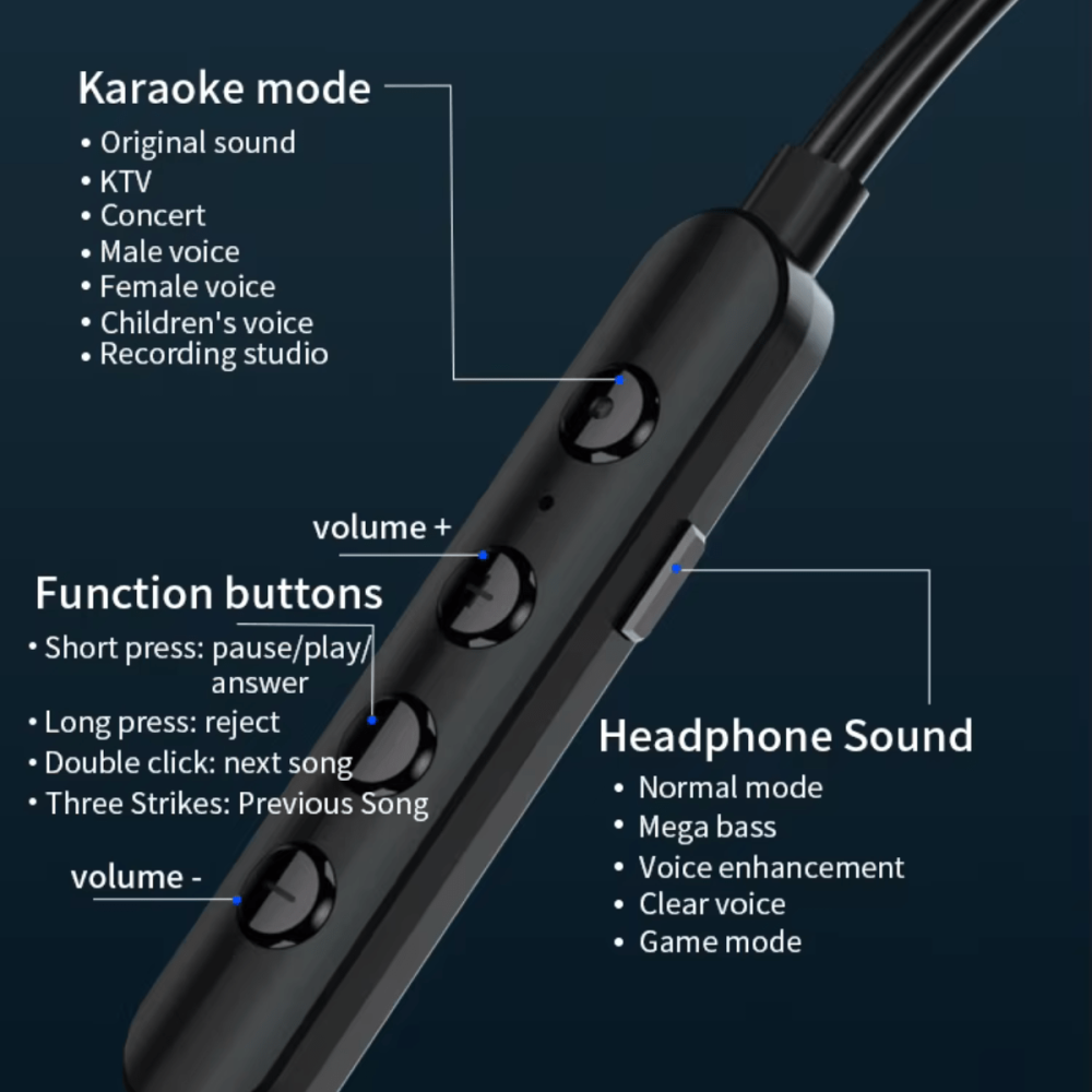 بفضل المايك المدمج بدقة HD يمكنك التبديل بين الأصوات لأكثر من وضع من خلال المفاتيح المدمجة مثل :
