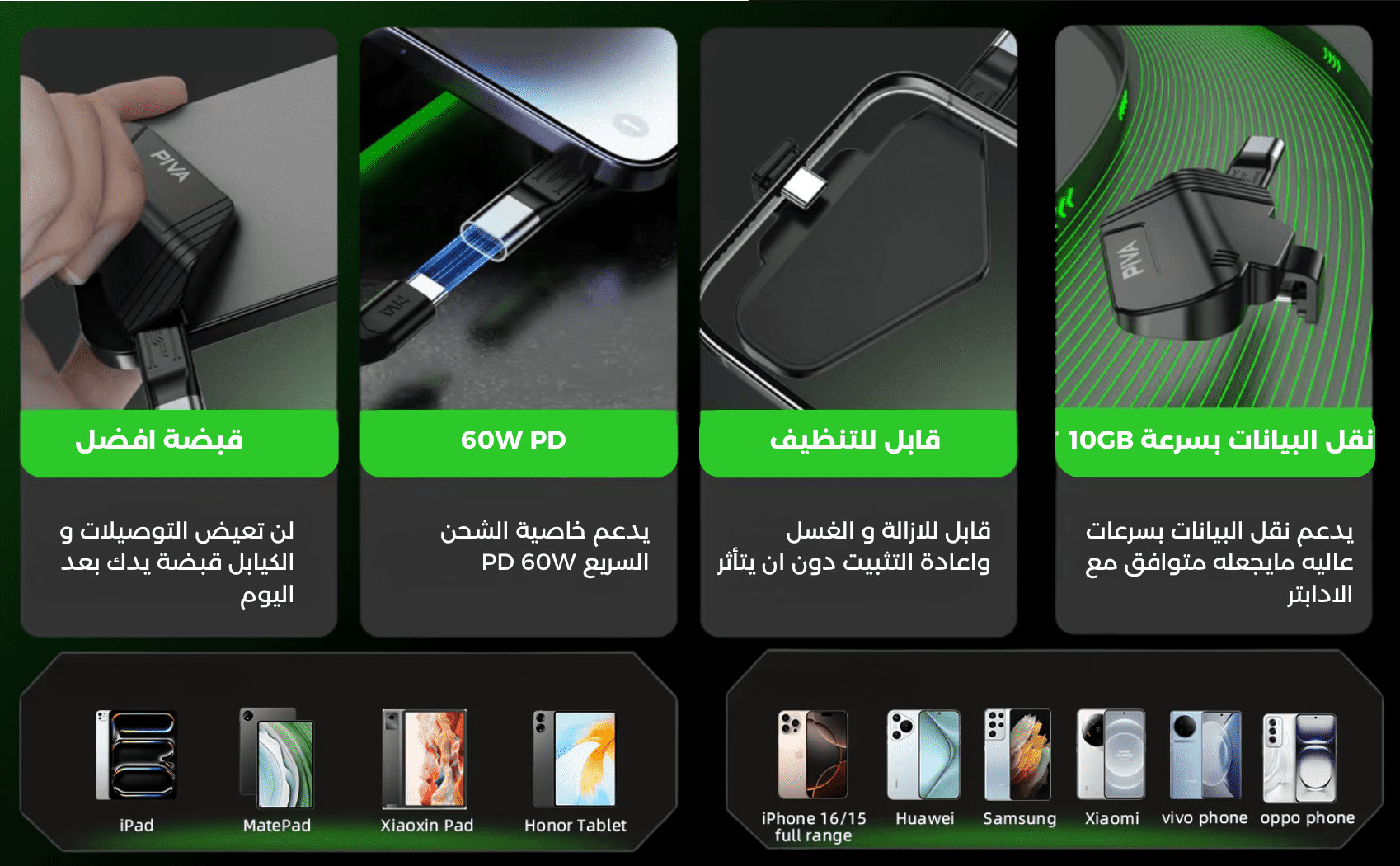 يُعتبر محول PIVA حلاً مبتكرًا لحماية وتوصيل أجهزة الايفون و الاندرويد ويتميز هذا المحول بتصميم مسطح ومرن (FPC) يتيح توصيلًا سلسًا عبر منفذ Type-C، مما يضمن نقل بيانات سريع ومستقر.