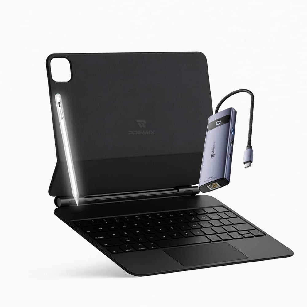 مجموعة كاملة لجميع أحتياجاتك من بريمكس تحتوي ماجيك كيبورد بريمكس ، و قلم ايباد ماي بينسل و ادابتر توصيلة تايب سي بـ 8 منافذ لتمنحك كل ماتحتاج في مجموعة واحدة .