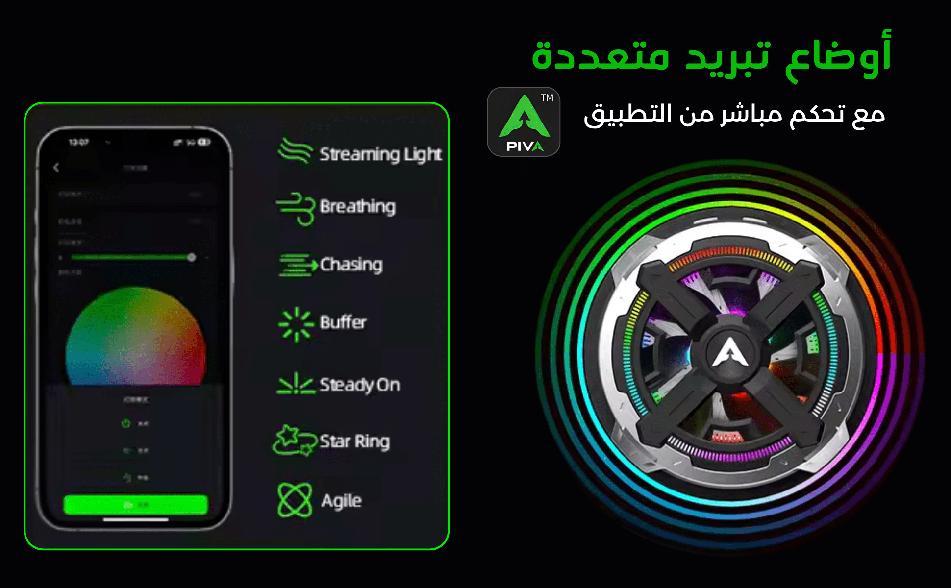 - التحكم الفوري من تطبيق مخصص: يتيح لك التحكم الكامل في إعدادات التبريد ومراقبة حرارة الجهاز مباشرة من هاتفك الذكي.