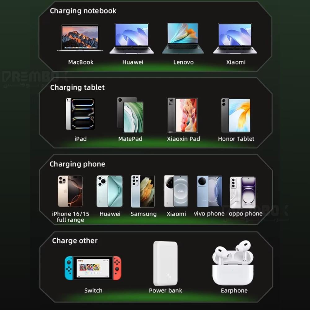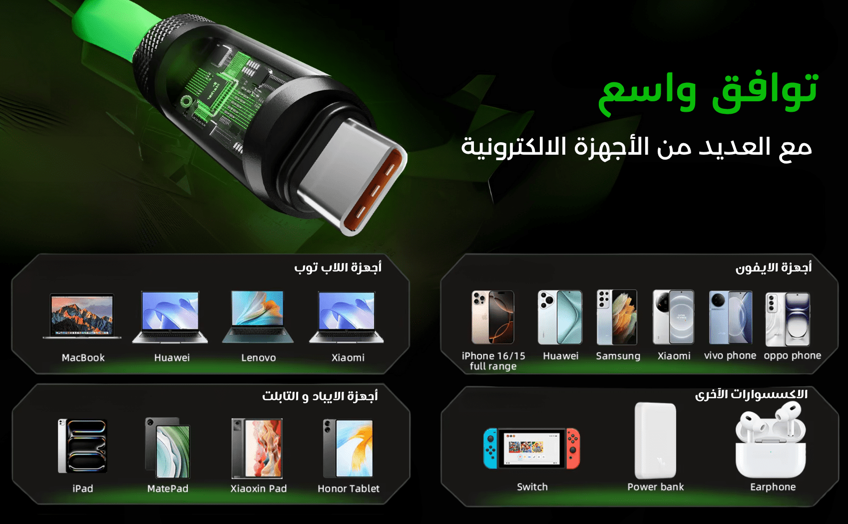 متوافق مع آيفون 15 و 16 وجميع أجهزة التايب سي و الايباد و اللاب توب و أجهزة ماك بوك