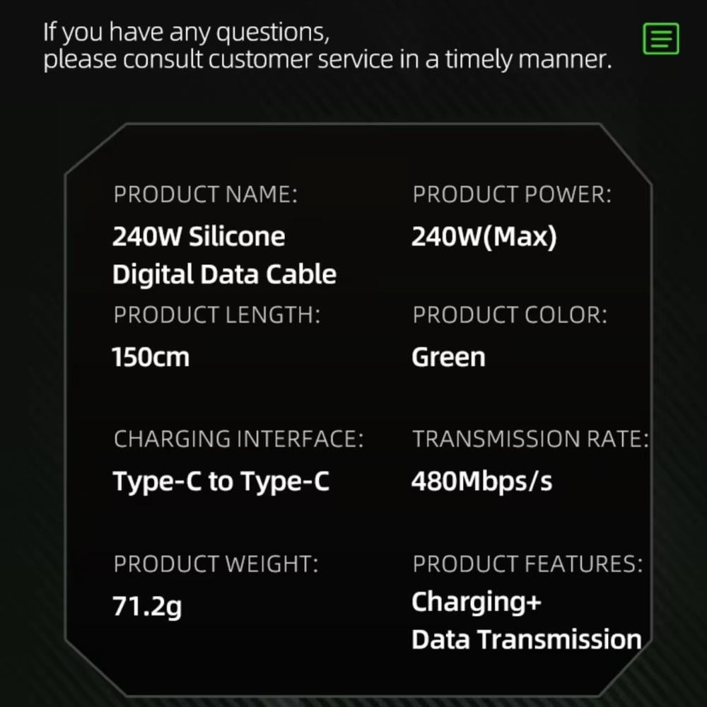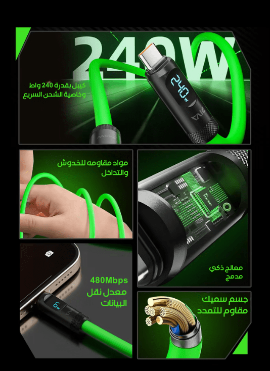 مصنوع من سيليكون عالي الجودة، يوفر شحن فائق السرعة بقوة 240 واط.