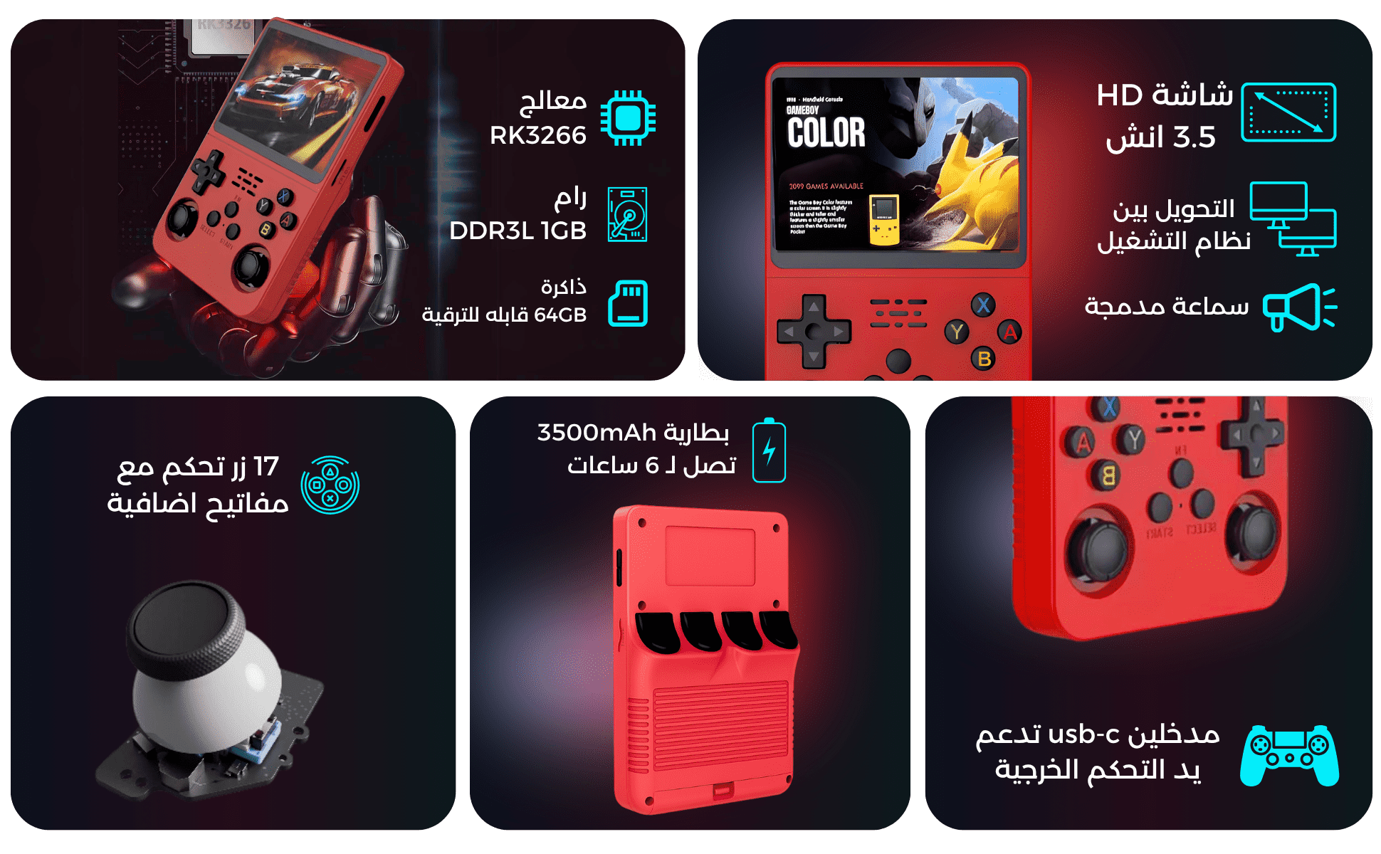 جهاز ألعاب محمول RG36 بسعة 64 جيجابايت - أحمر