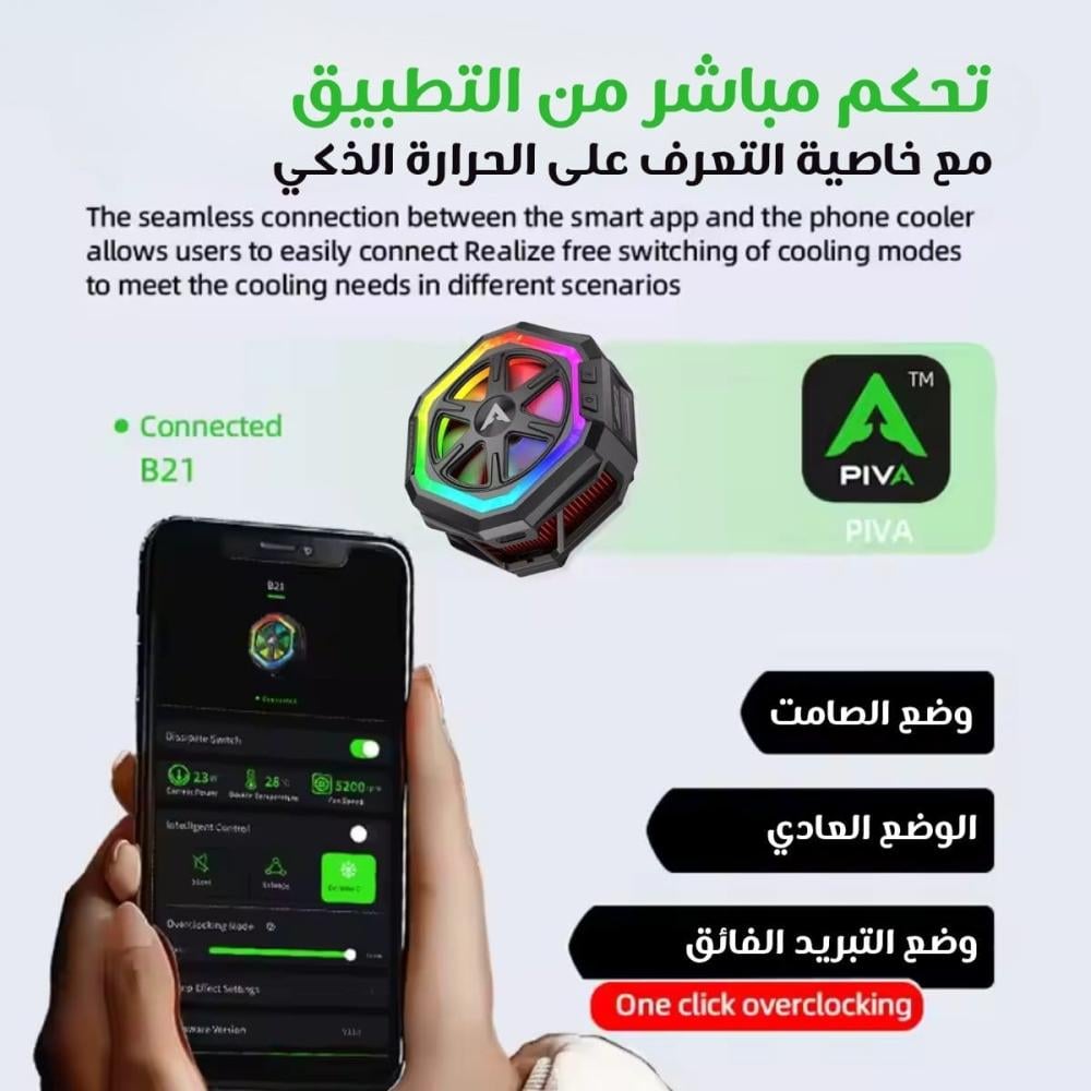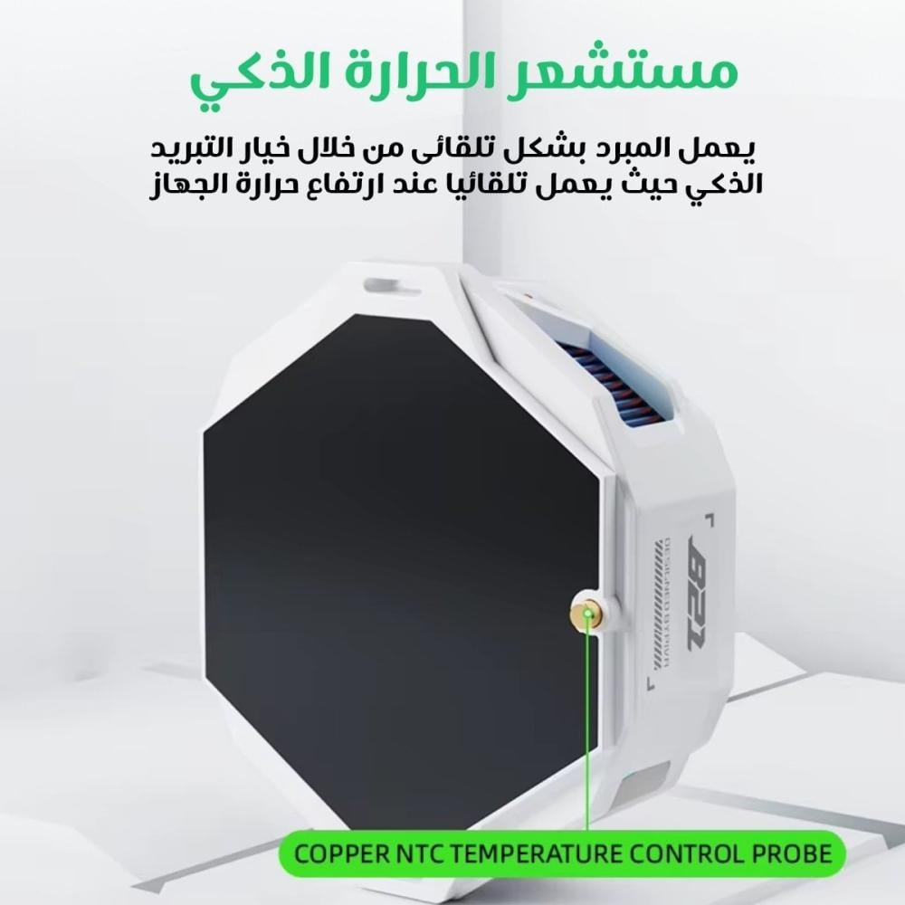 Designed to reduce smartphone overheating during long usage or heavy gaming sessions. It features a sleek magnetic design, smart control via a mobile app, and three adjustable cooling speeds. Compatible with most smartphones, making it an ideal choice for gamers and live streamers.