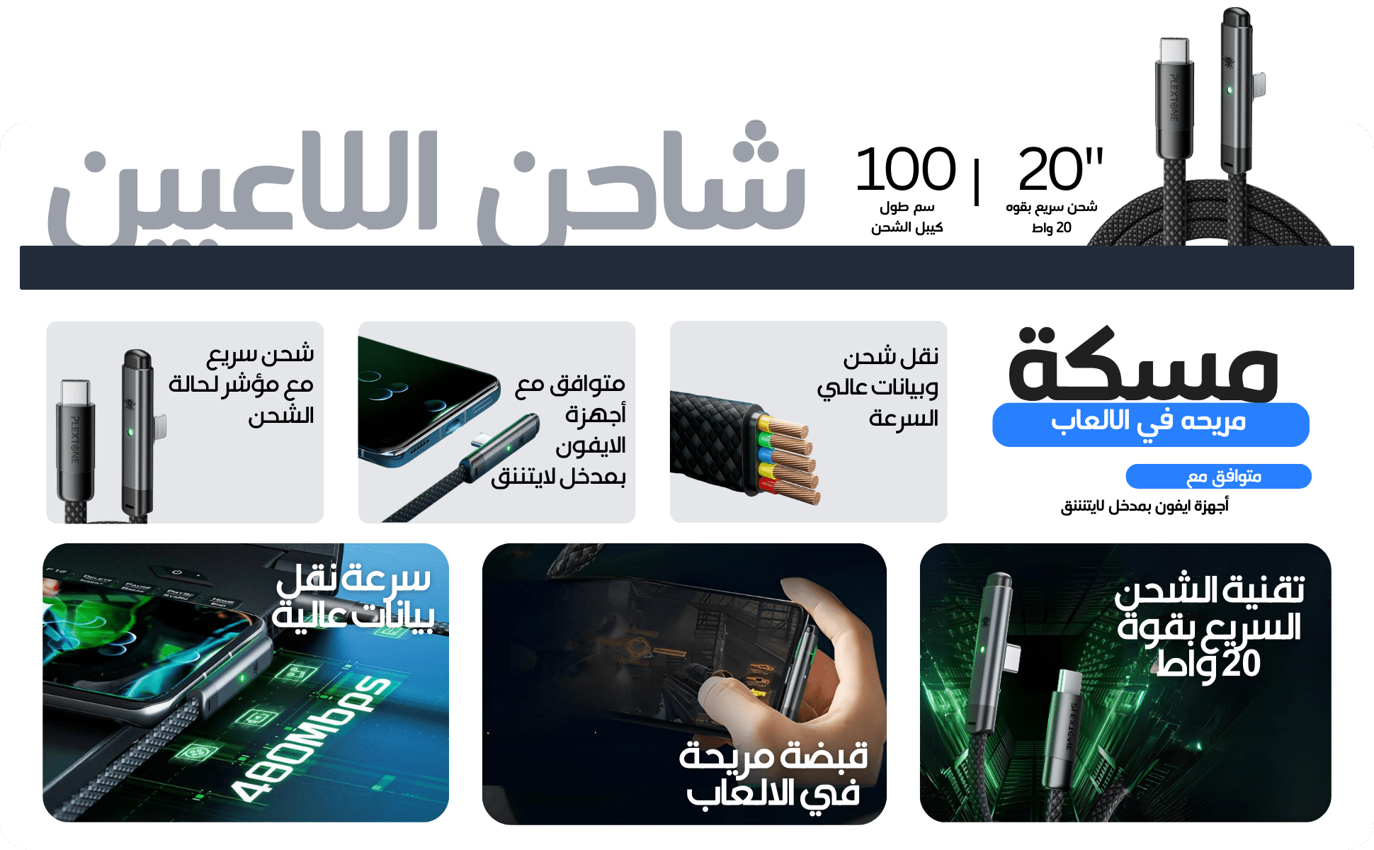 Experience unparalleled performance with the Type-C to Lightning charging cable, specifically designed to meet the needs of gamers. This cable features a sleek, game-friendly design and offers exceptional and reliable charging for your device during practical use.