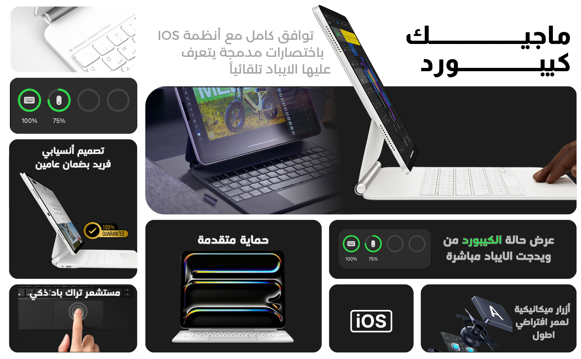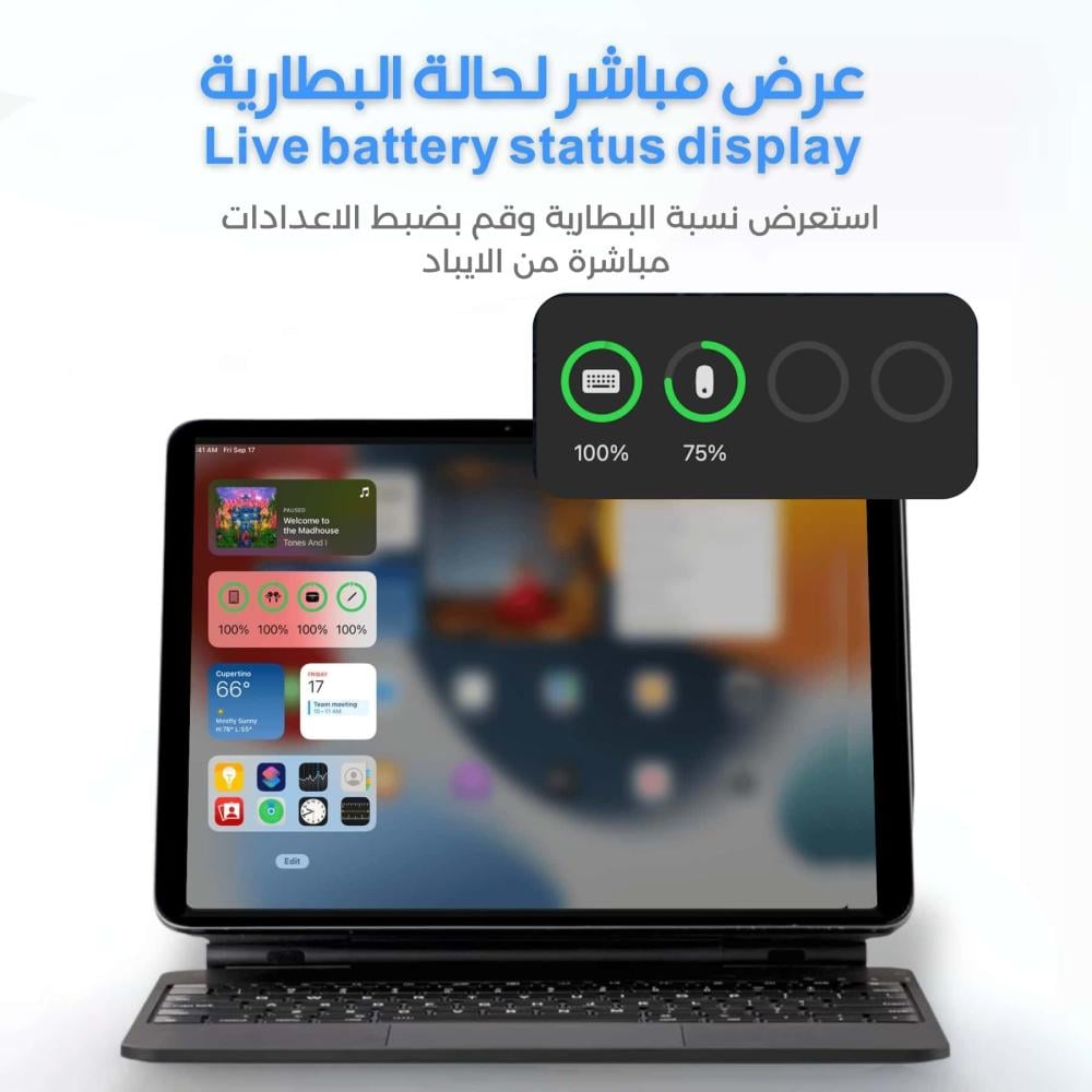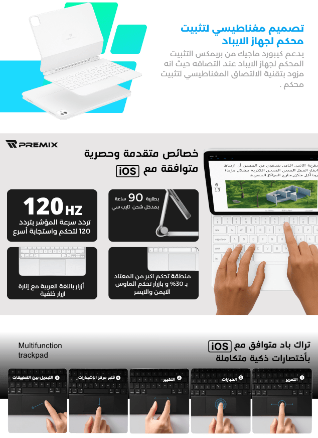 Magic Keyboard from Premix for iPad 11 Pro, Air 4 and 5 is the best choice and is compatible with Apple devices, as it is compatible with iPads in both Arabic and English and is considered the best alternative in general with the smart connection feature via Bluetooth and the longest battery life of a mobile device by 100 hours of use in average.