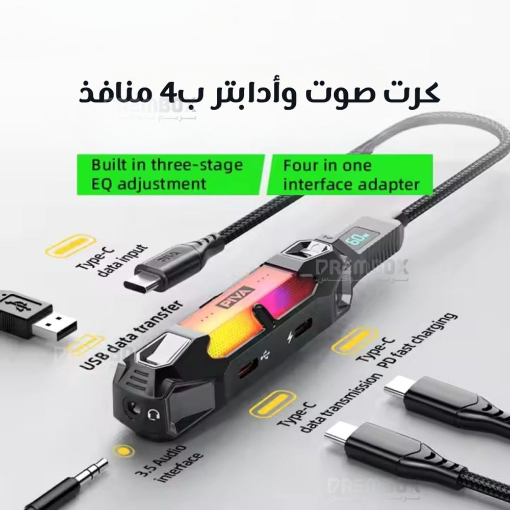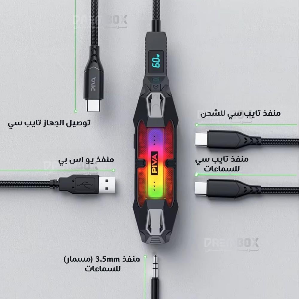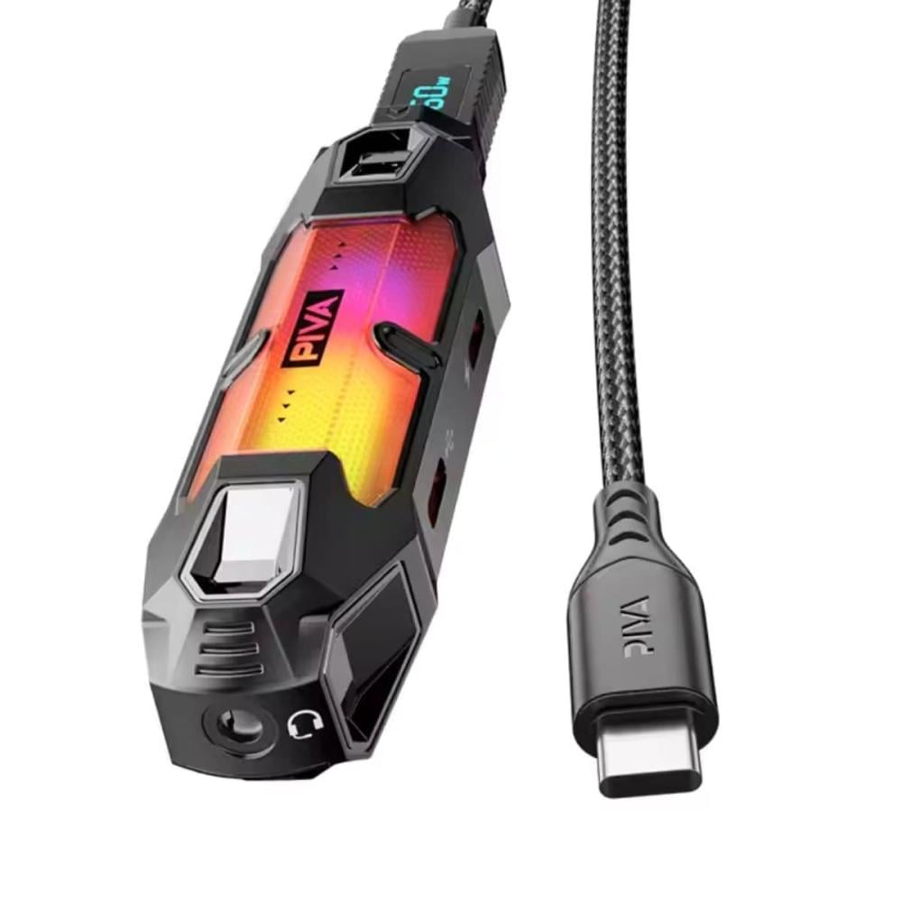 The PIVA X41 is a multifunctional (4-in-1) sound card adapter specifically designed to enhance the gaming and audio experience on mobile phones, tablets, iPads, and laptops equipped with a Type-C port. It combines high-fidelity audio, fast charging, and expanded connectivity options in one compact device.