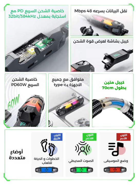 - Built-in Display Screen: Shows real-time charging power (watts).