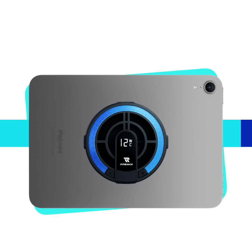 Exceptional cooling performance with 3 levels, featuring smart AI cooling based on device temperature, a display screen for temperature readings, and secure attachment with straps and magnets.